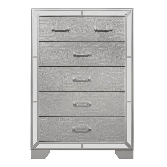 Barcelona White Gloss & Silver Accent Queen Juego de dormitorio de 5 piezas