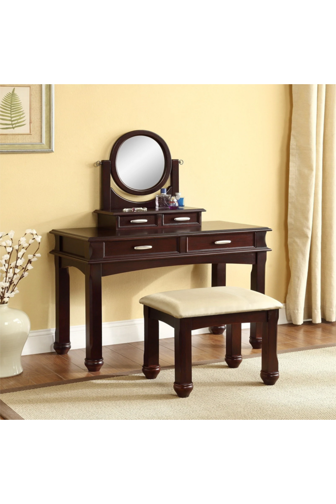 Juego de tocador espresso con mesa y taburete