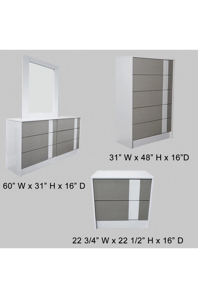 Juego de recámara Queen de Praga, blanco brillante y plateado, 5 piezas