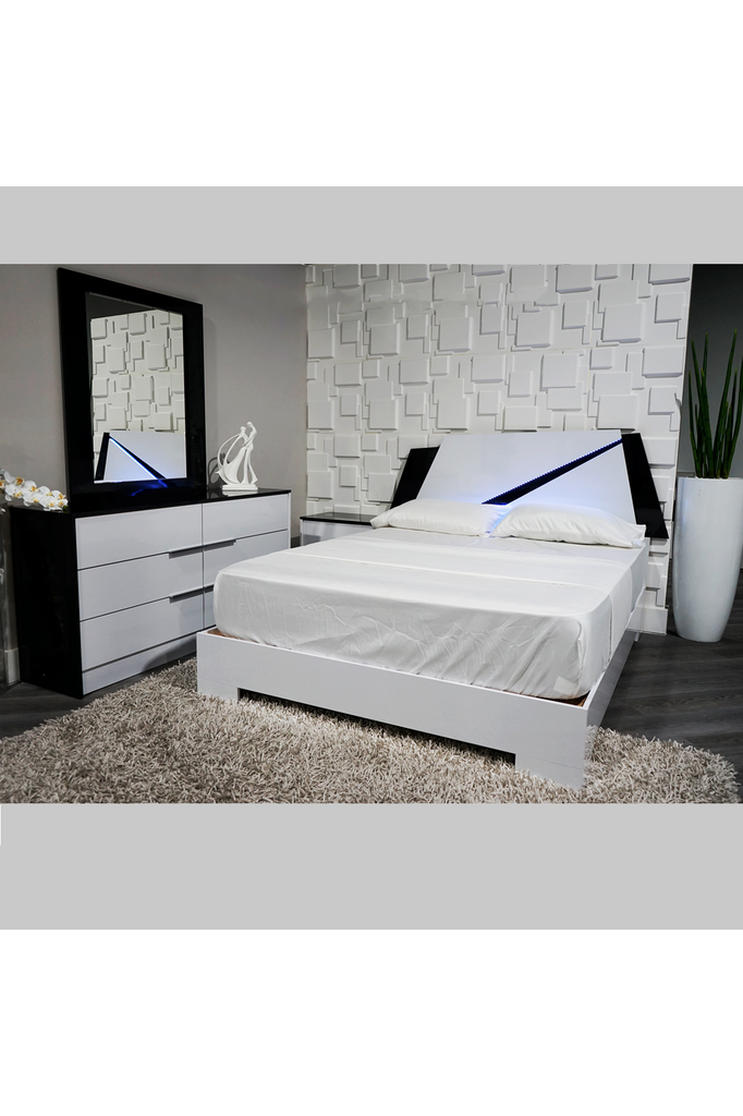Manhattan Black Gloss & White Gloss Queen Juego de recámaras 5PCS