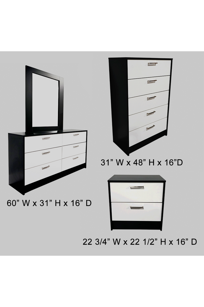 Avellino Black Matte & White Matte Accent Queen Juego de recámaras 5PCS