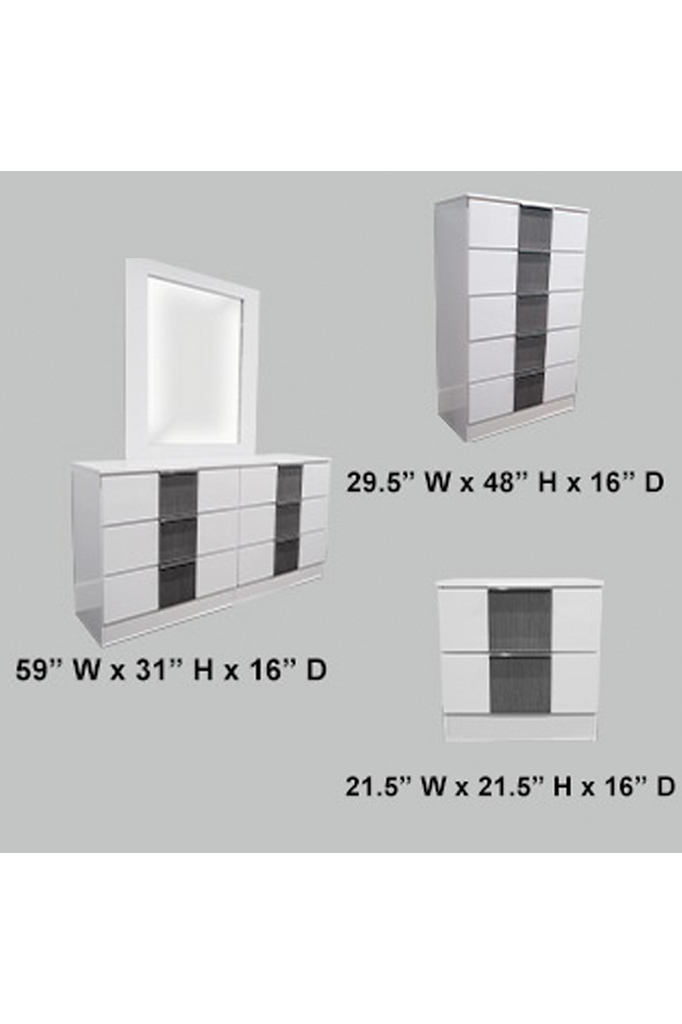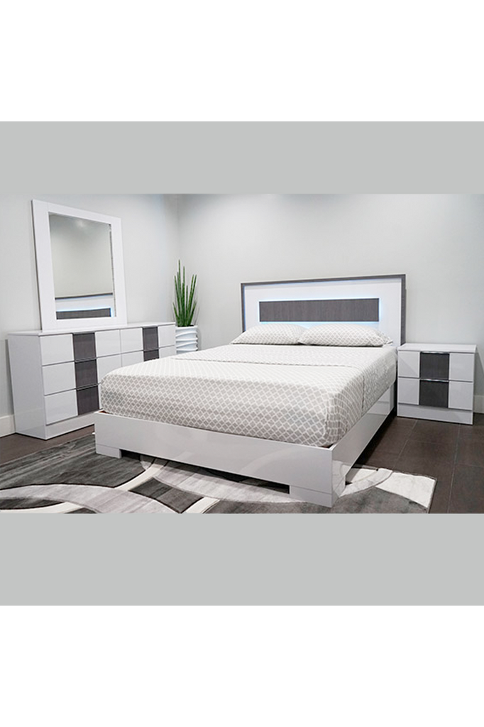 Juego de dormitorio Queen de 5 piezas en blanco y gris luna eléctrica de Sevilla