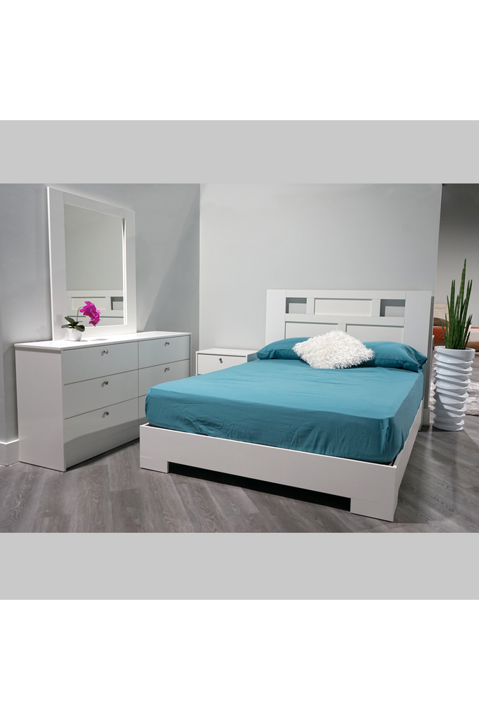 Cama y piezas del conjunto fabricadas en melamina de madera resistente a la humedad y rayaduras.