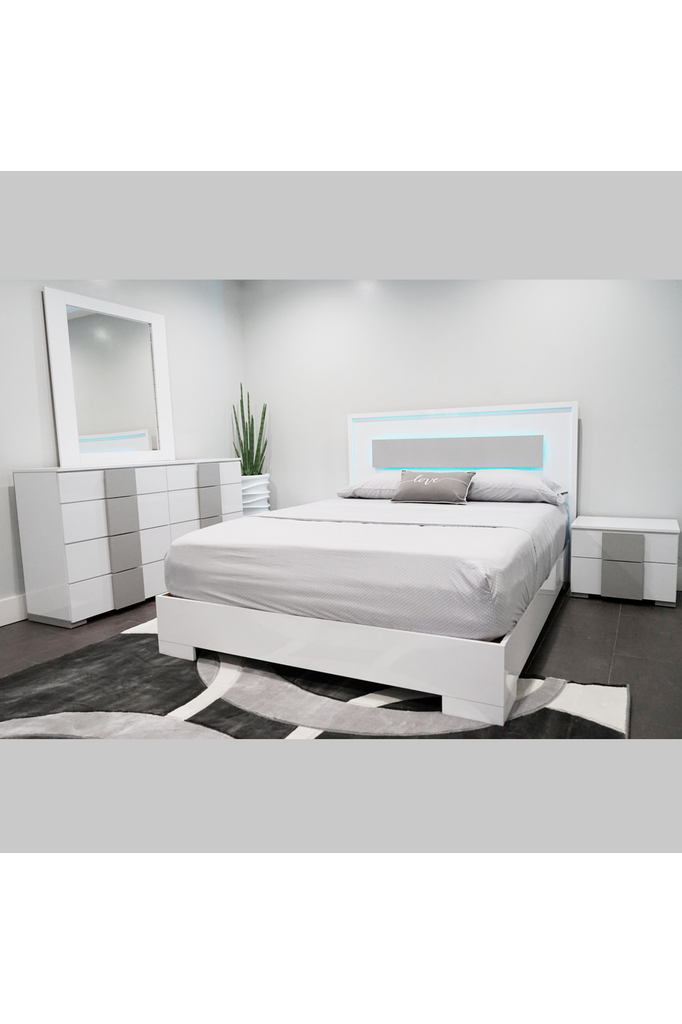 Palermo White Gloss & Silver Accent Queen Juego de dormitorio de 5 piezas