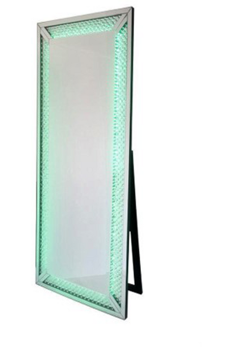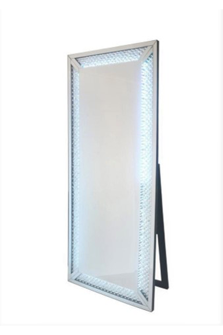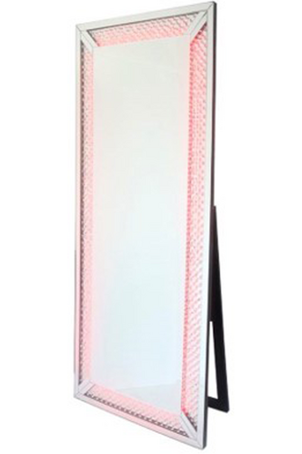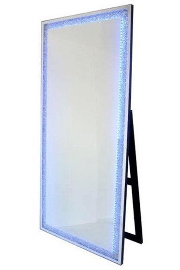 Amplifique la experiencia de su dormitorio con este espejo bellamente diseñado que ha sido diseñado para agregar valor a su hogar. Este espejo rectangular de cuerpo entero con una base de madera con detalles de espejo viene con incrustaciones de cristales de imitación, será la mejor solución para la decoración de su habitación. Además, este espejo cuenta con luces LED intercambiables con un control remoto.