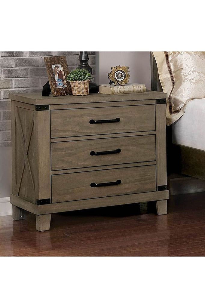 This rustic style is ruggedly built with contrast vibrantly against the hues of the antique gray finish. The crossed planked panels are reminiscent of aged barn doors lending a rich country feel to your home. A felt lined top drawer adds extra appeal and functionality.