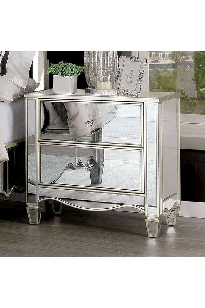 Glamor and shine have never looked as good as it does with this chest from the Eliora Collection. With its silver finish and crystal drawer knobs, everything about this chest sparkles. Its ornate accents and curved feet will make you feel like royalty.