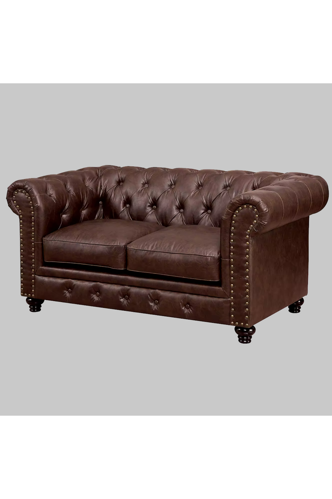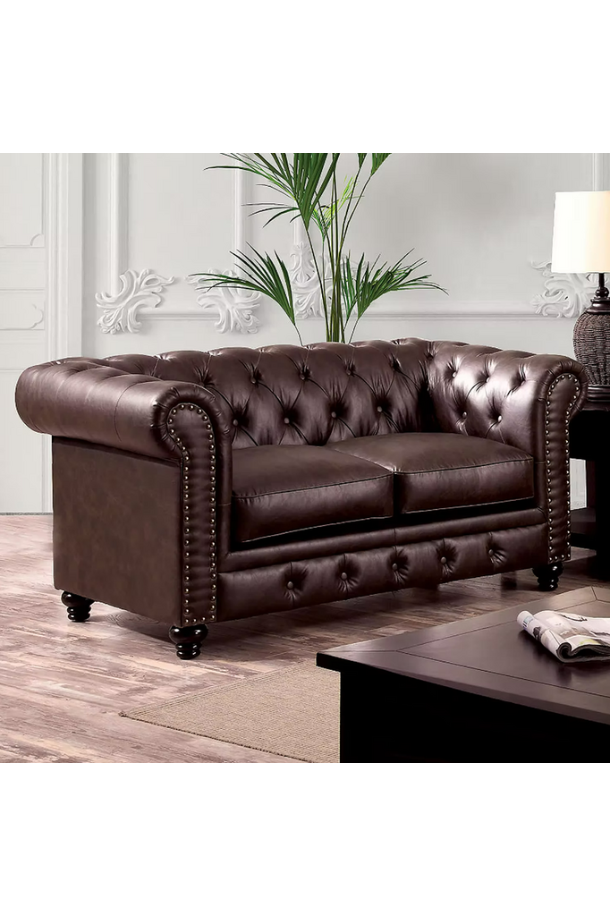 Featuring button tufted cushions with nail head trim borders, this leatherette sofa set offers a timeless design bound to fit any living room.