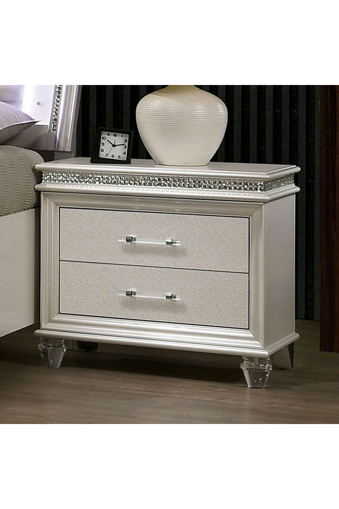 Create a room made for a princess with this from the Maddie Collection. It features acrylic legs and crystal accents creating a glamorous aesthetic. Give into your glitzy side with this opulent set.