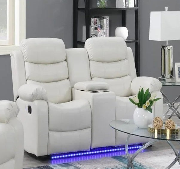 Upholstered loveseat, with folding backrest, with cup holder console, manual recliners, brand new with manufacturer's warranty