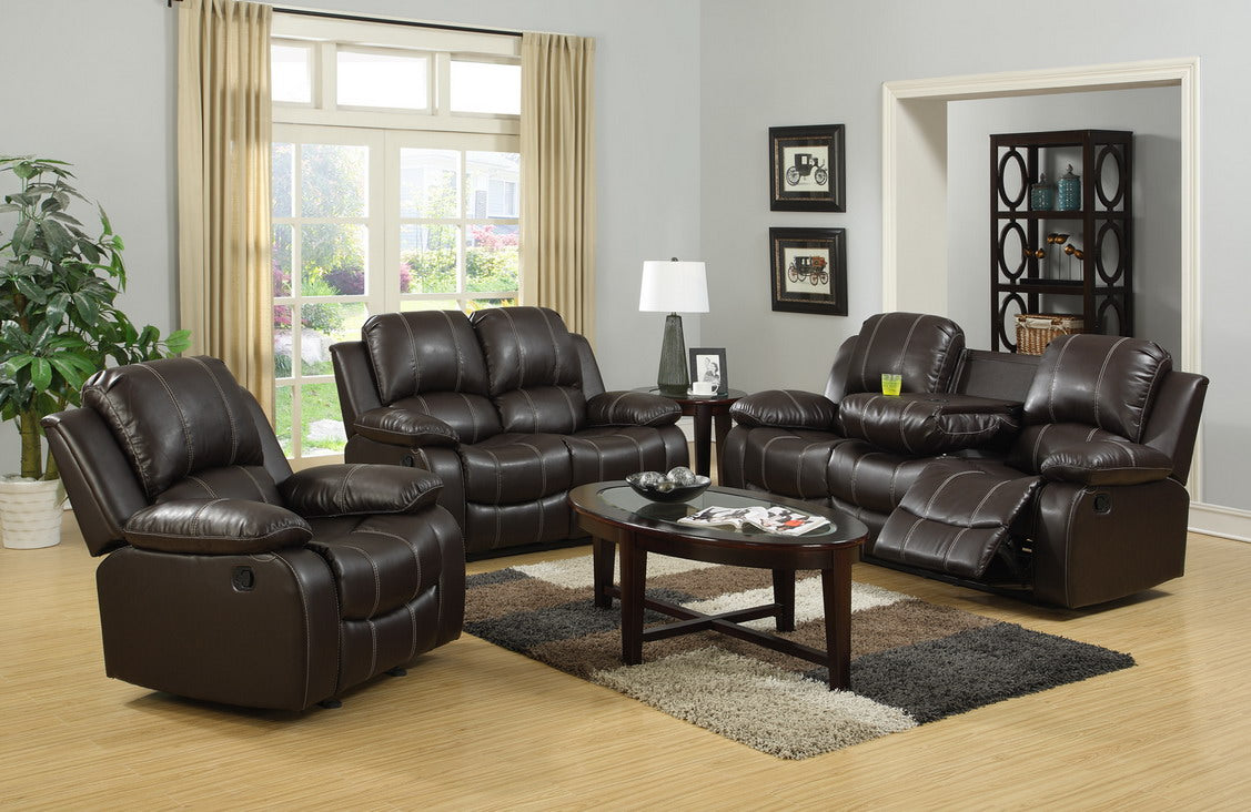 Transitional Rustic Dark Brown Leatherette Recliner Living Room Set
