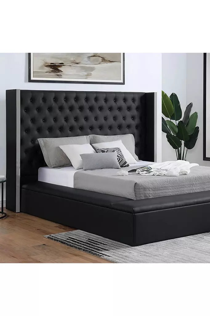 The platform style of this bed brings a touch of modern to an otherwise transitional design. The headboard features wingback sides, while the main central panel is button-tufted in a diamond pattern. The whole piece is upholstered in leatherette with a deep espresso color. With a profile this low, it comes with an inside board to make it mattress-ready, so you won't need a separate foundation to enjoy its comfort right away.